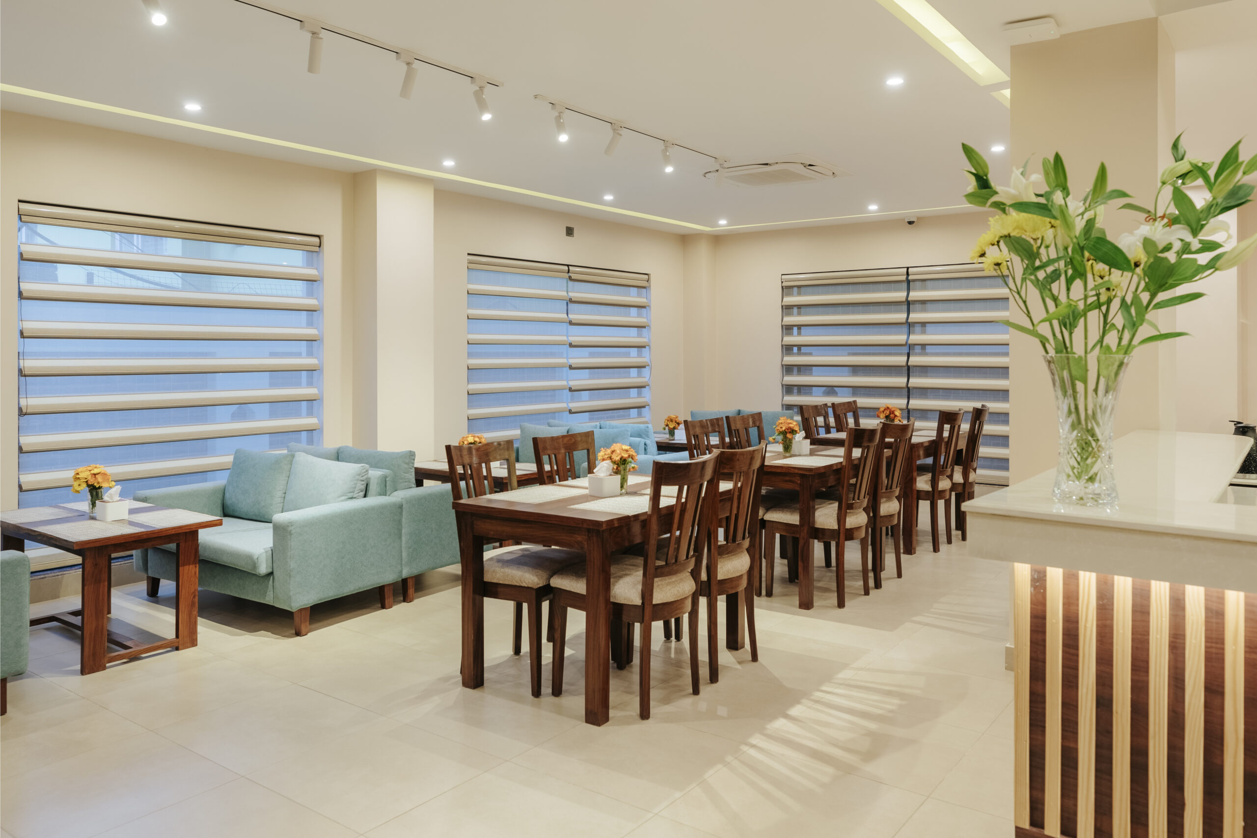 The ambience is welcoming and cozy with soft background music. The hotel also has outdoor seatings, so that our guests can enjoy the coffee or breakfast in the fresh air. Our chef DEEPAK has prepared 3 Menu from which our Guests can choose.